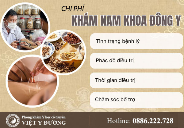 Chi phí thăm khám và điều trị nam khoa bằng Đông y phụ thuộc vào nhiều yếu tố, nên không thể áp dụng một mức giá chung cho tất cả bệnh nhân. Một số yếu tố ảnh hưởng gồm: