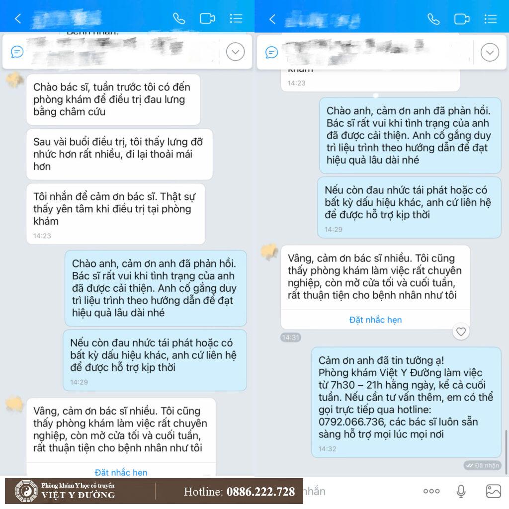 Phản hồi của bệnh nhân sau khi điều trị tại Phòng khám Y học cổ truyền Việt Y Đường