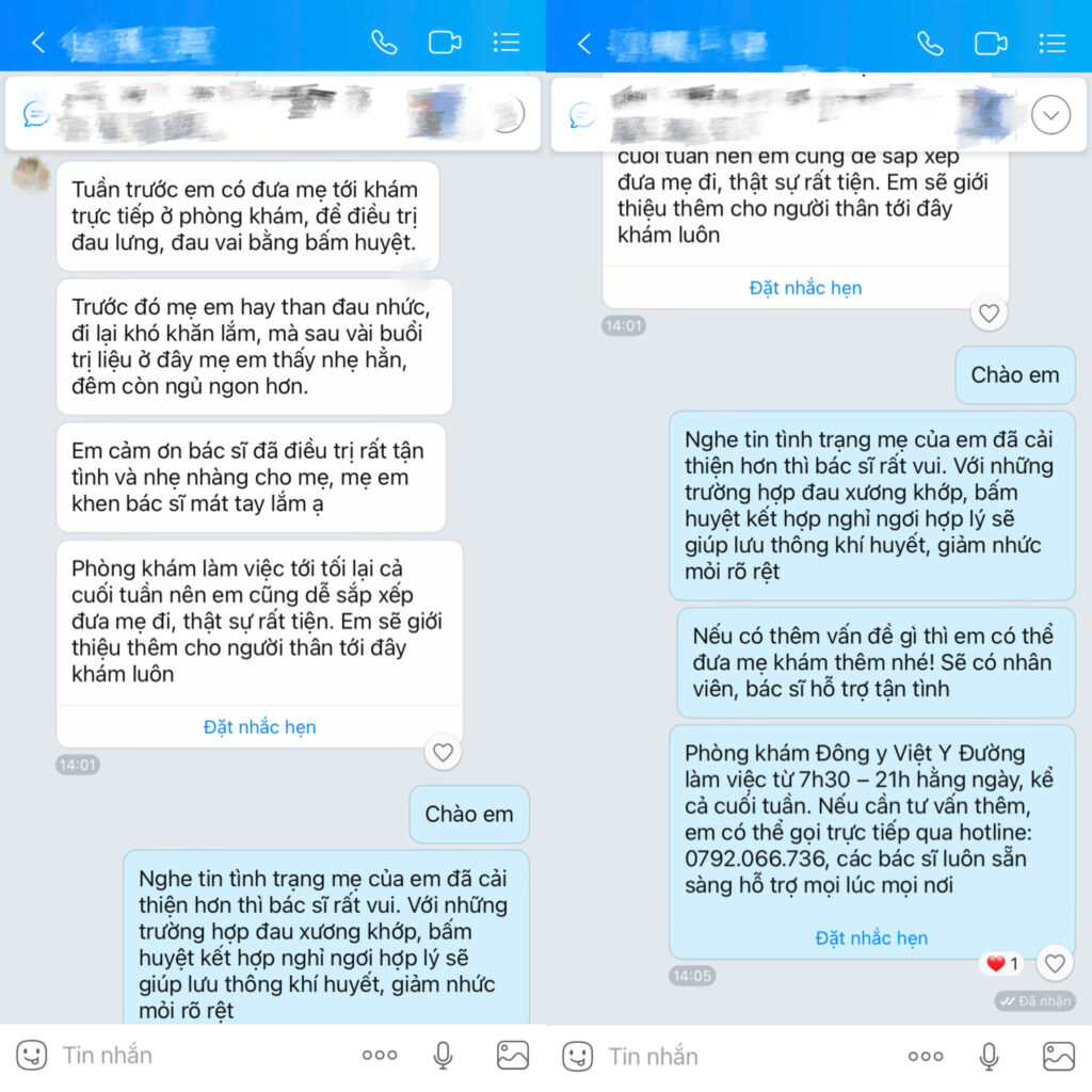 Phản hồi của bệnh nhân sau khi điều trị tại Phòng khám Y học cổ truyền Việt Y Đường