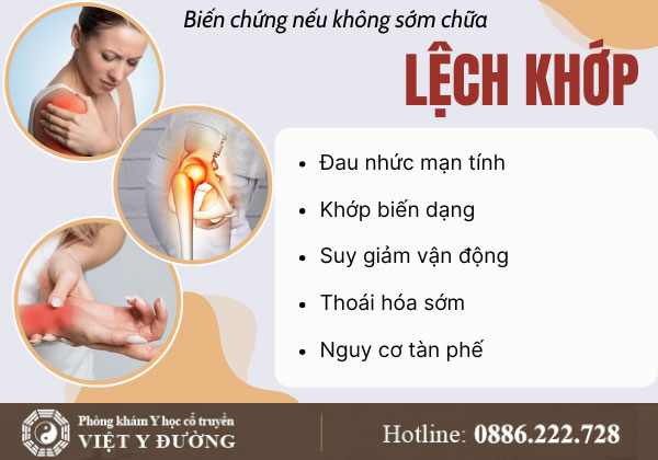 Nếu tình trạng lệch khớp kéo dài mà không được can thiệp đúng cách, người bệnh có thể gặp phải nhiều hậu quả nặng nề: