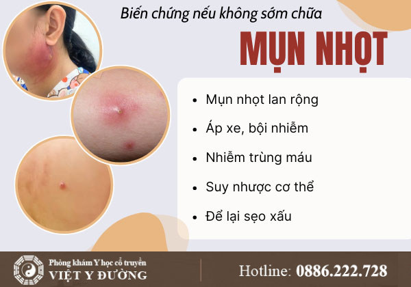 Theo Đông y, mụn nhọt là do nhiệt độc, thấp nhiệt, khí huyết ứ trệ mà sinh ra. Nếu không chữa trị đúng cách, bệnh có thể gây ra nhiều biến chứng: