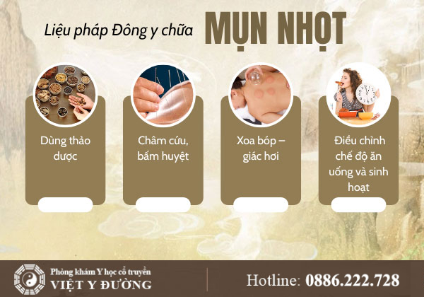 Trong Đông y, điều trị mụn nhọt chú trọng thanh nhiệt, giải độc, tiêu viêm, hoạt huyết và điều hòa tạng phủ. Mục tiêu là vừa làm tiêu nhọt, vừa khôi phục cân bằng cơ thể, ngăn ngừa tái phát.