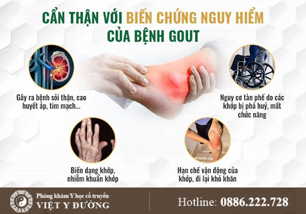 Nếu bệnh gout không được phát hiện và điều trị kịp thời, người bệnh có thể đối mặt với nhiều biến chứng nguy hiểm, ảnh hưởng nghiêm trọng đến sức khỏe: