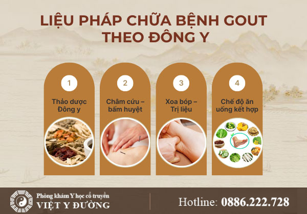 Sử dụng các bài thuốc có tác dụng thanh nhiệt, giải độc, lợi niệu, khu phong thấp. Từ đó giảm sưng đau và hỗ trợ đào thải acid uric.