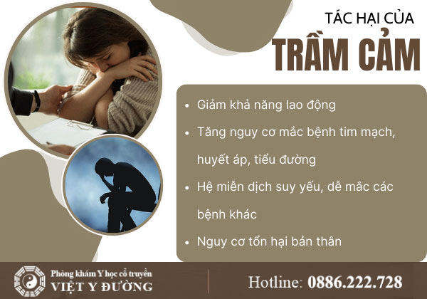 Trầm cảm để lâu dễ gây nhiều hệ lụy nguy hiểm. Hãy đến Phòng khám Y học cổ truyền Việt Y Đường để được thăm khám và điều trị sớm. Điều trị bằng y học cổ truyền sẽ giúp ổn định tinh thần, cải thiện giấc ngủ, nâng cao chất lượng cuộc sống.