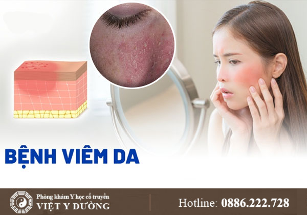 Viêm da là tình trạng da bị đỏ, ngứa, bong tróc hoặc nổi mẩn, có thể xuất hiện ở nhiều vùng khác nhau trên cơ thể như mặt, tay, chân, da đầu hoặc lưng. Theo Đông y, viêm da thường liên quan đến rối loạn chức năng gan, phế, thận và khí huyết không lưu thông.